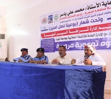 المهرة/إعلام الجامعة: 7/مايو/2024م. شاركت جامعة المهرة إدارة شرطة السير في محافظة المهرة، بندوة توعوية مرورية بالتعاون والتنسيق مع الإدارة العامة ... قراءة المزيد