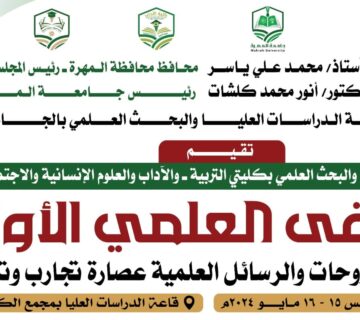 تدعوكم نيابة الدراسات العليا بجامعة المهرة حضور الملتقى العلمي الأول كتابة الأطروحات والرسائل العلمية عصارة تجارب وتميز برعاية معالي الأستاذ ... قراءة المزيد