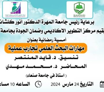 المهرة/إعلام الجامعة: 12/أبريل/2024م. (( يَا أَيَّتُهَا النَّفْسُ الْمُطْمَئِنَّةُ ارْجِعِي إِلَى رَبِّكِ رَاضِيَةً مَرْضِيَّةً فَادْخُلِي فِي عِبَادِي وَادْخُلِي جَنَّتِي)) صدق الله ... قراءة المزيد