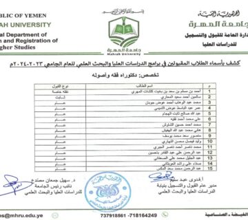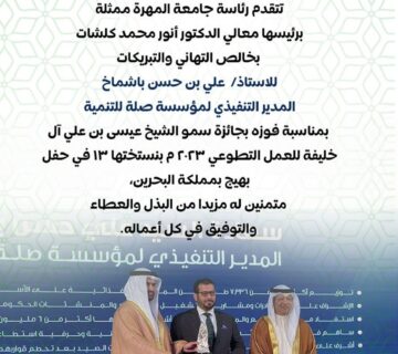 المهرة/إعلام الجامعة: 14/سبتمبر/2023م. تتقدم رئاسة جامعة المهرة ممثلة برئيسها معالي الدكتور أنور محمد كلشات، بخالص التهاني والتبريكات للأستاذ علي بن ... قراءة المزيد