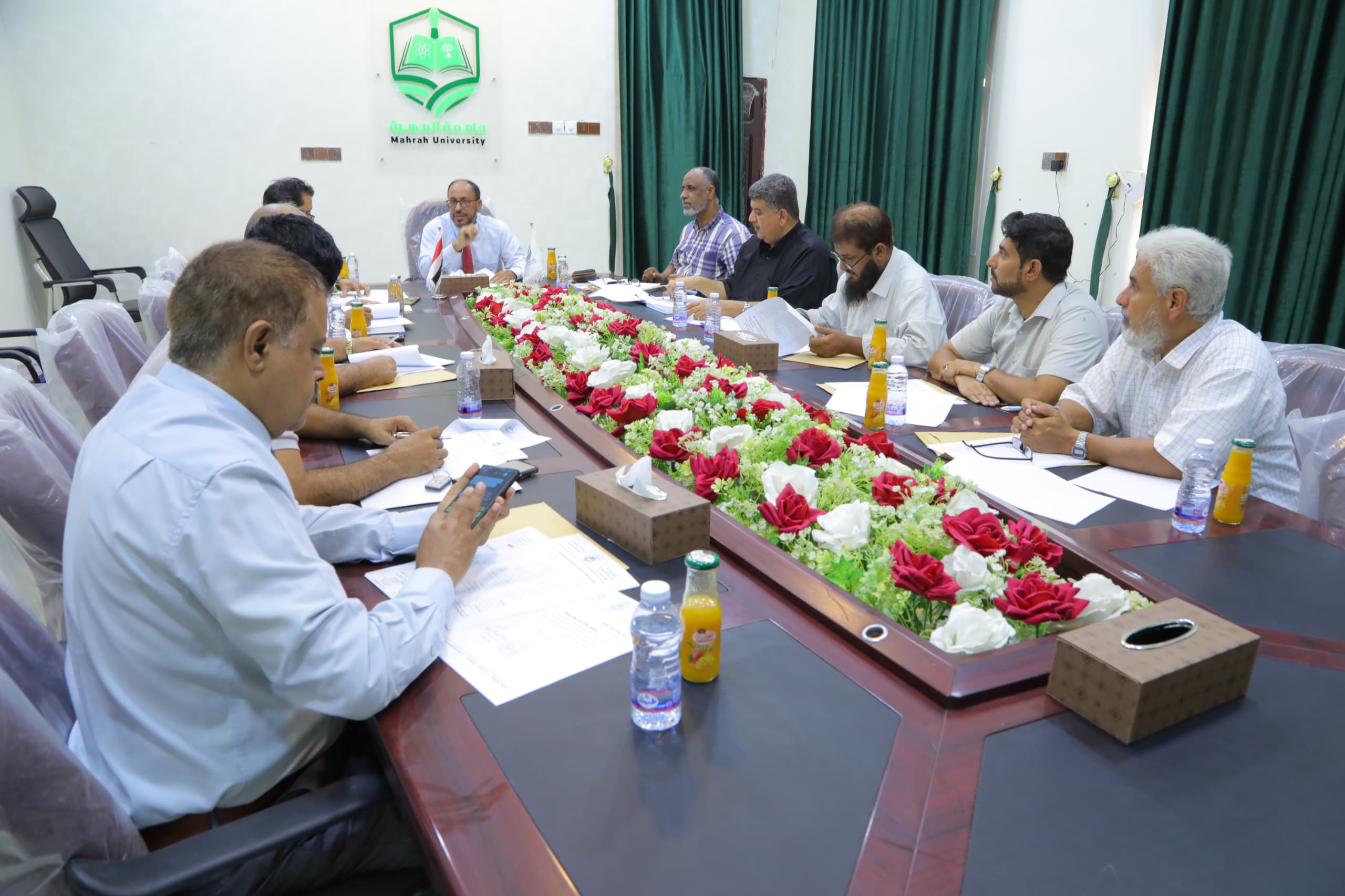 عقد مجلس جامعة المهرة، اليوم، اجتماعه الاعتيادي لدورته التاسعة للعام الجامعي 2024/ 2025م، برئاسة الأستاذ الدكتور عادل كرامة معيلي نائب رئيس الجامعة لشؤون الطلاب، وبحضور كل من الدكتور فائز جمعان بن مركب نائب رئيس الجامعة للشؤون الأكاديمية، والدكتور سهيل جمعان مصدع نائب رئيس الجامعة للدراسات العليا والبحث العلمي، والأستاذ محمد سعيد بايعقوب الأمين العام للجامعة، إلى جانب عمداء الكليات ومديري المراكز وأعضاء المجلس.