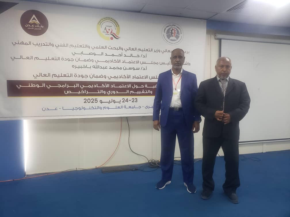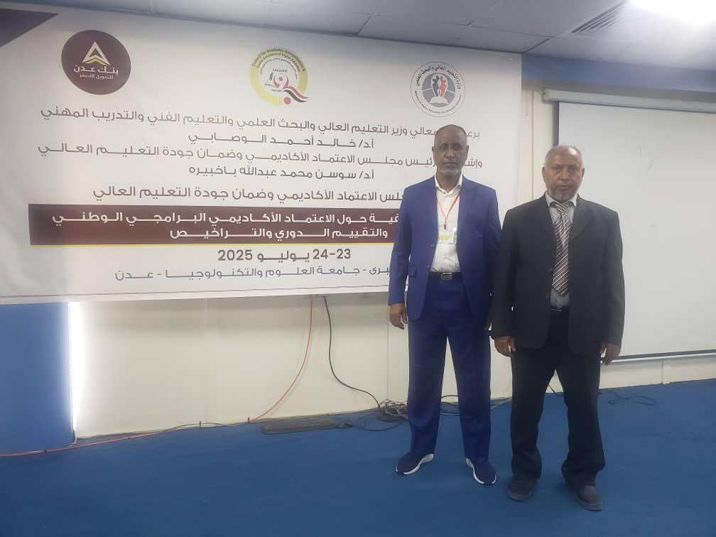 شارك نائب رئيس جامعة المهرة للشؤون الأكاديمية الدكتور فائز جمعان بن مركب ومدير مركز التطوير الأكاديمي وضمان الجودة بجامعة المهرة الأستاذ الدكتور محمد علي هارب، في الورشة التعريفية التي نظمها مجلس الاعتماد الأكاديمي وضمان جودة التعليم العالي، والتي انعقدت في رحاب جامعة العلوم والتكنولوجيا – المركز الرئيس بعدن، خلال الفترة من 23 إلى 24 يوليو 2025، تحت عنوان: “الاعتماد الأكاديمي البرامجي الوطني والتقييم الدوري والتراخيص”.