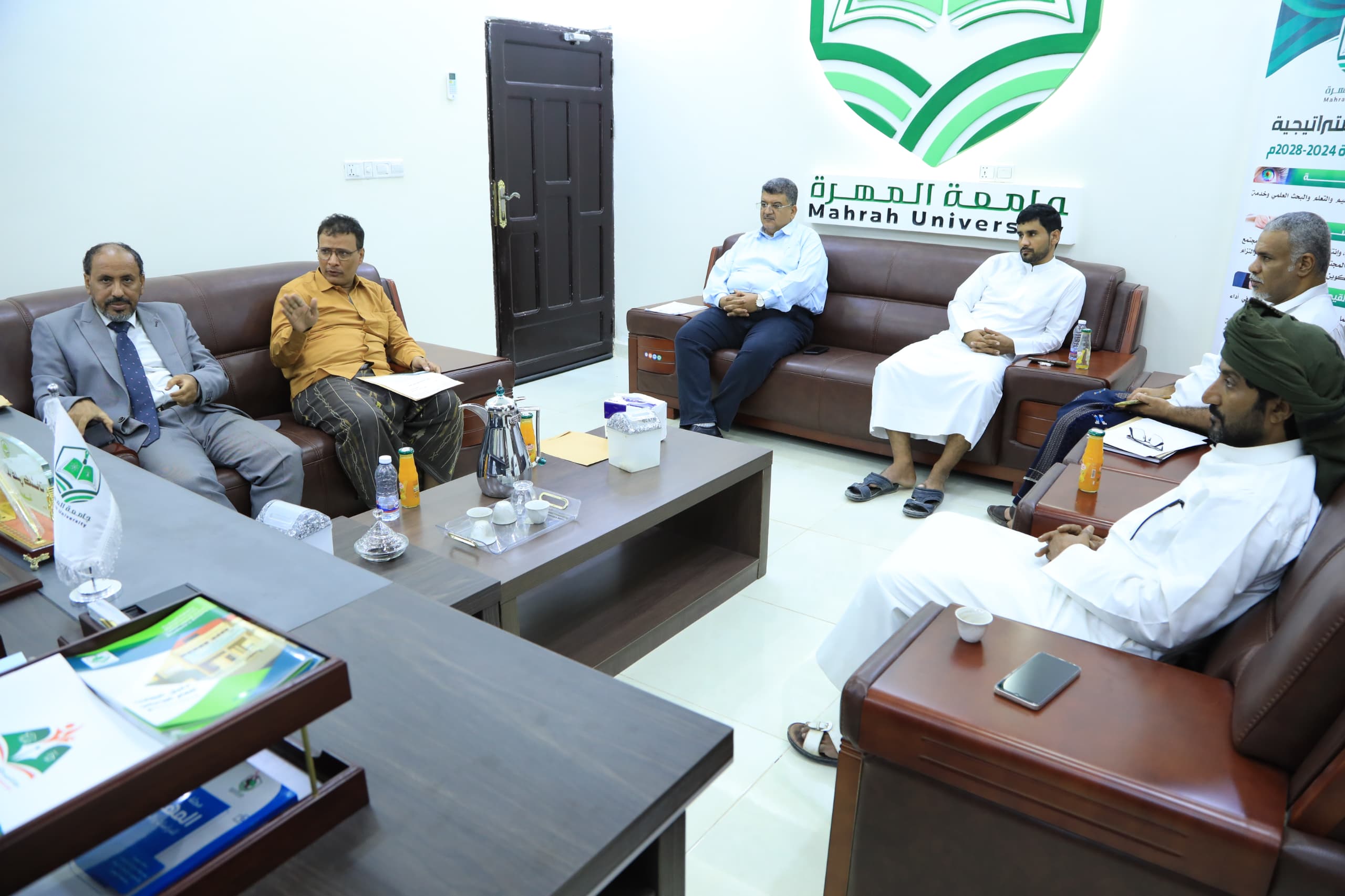 التقى معالي رئيس جامعة المهرة الدكتور أنور محمد كلشات، اليوم بمكتبه، مدير مركز اللغة المهرية للدراسات والبحوث بالجامعة الدكتور سعيد سعد نجادان القميري، بحضور نائب رئيس الجامعة لشؤون الطلاب الأستاذ الدكتور عادل كرامة معيلي، والأمين العام للجامعة الأستاذ محمد سعيد بايعقوب، ونائب مدير المركز الأستاذ محمد عبدالعزيز جعفر، ومدير التوثيق بالمركز الأستاذ سعد مسلم كلشات.