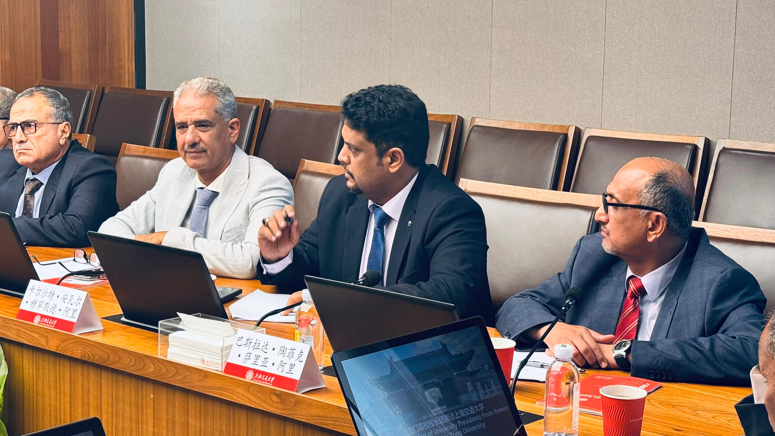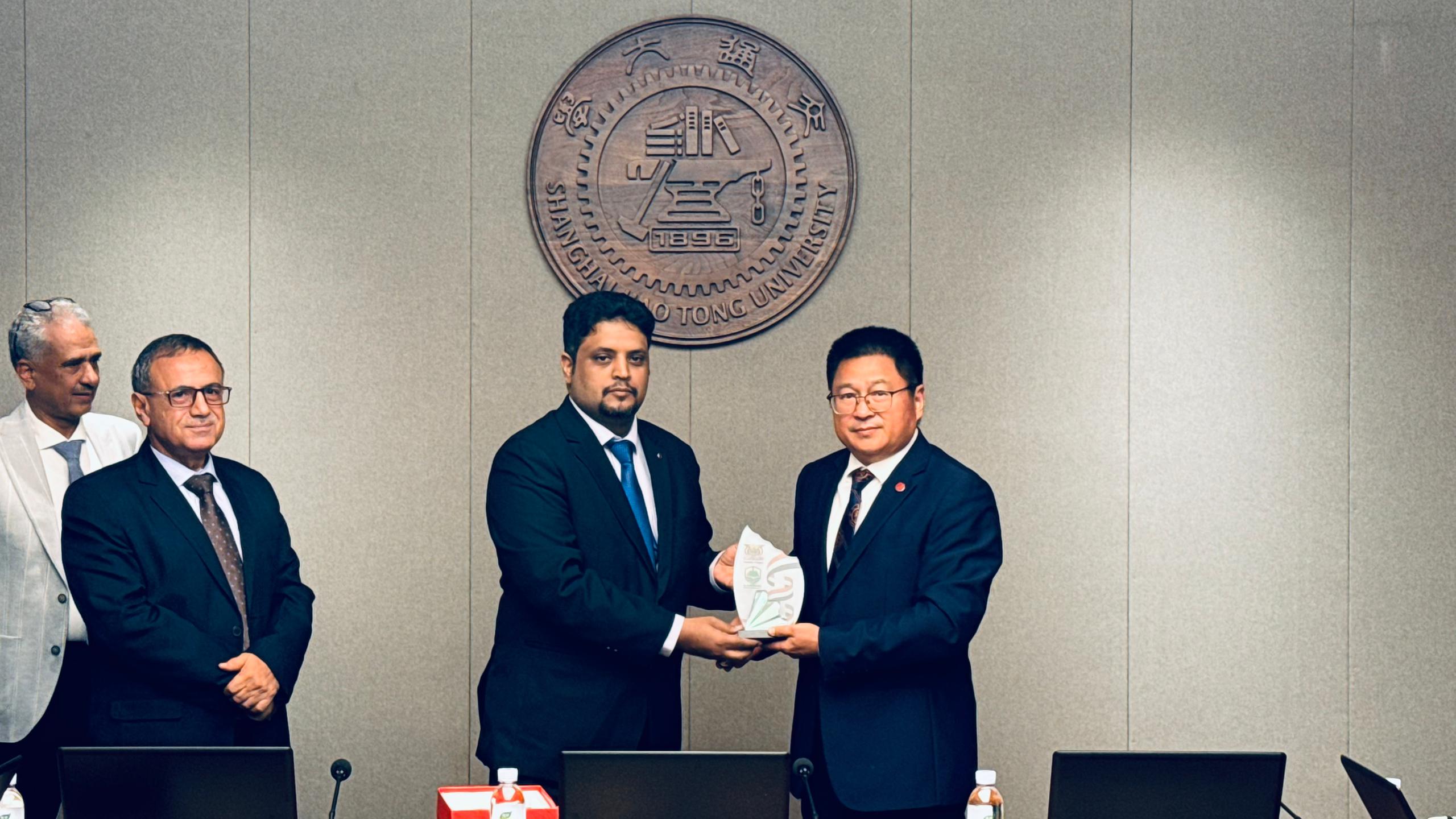 وفي الفترة المسائية، توجه الوفد إلى جامعة شانغهاي جياوتونغ، إحدى أعرق الجامعات الصينية التي تأسست عام 1896 وتُصنّف ضمن أفضل الجامعات عالميًا في مجالات الهندسة، التكنولوجيا، الطب والابتكار. وألقى رئيس جامعة شبوة الأستاذ الدكتور توفيق باسرده كلمة الوفد، أكد فيها على رغبة الجامعات اليمنية في بناء شراكات استراتيجية طويلة الأمد مع جامعة جياوتونغ.