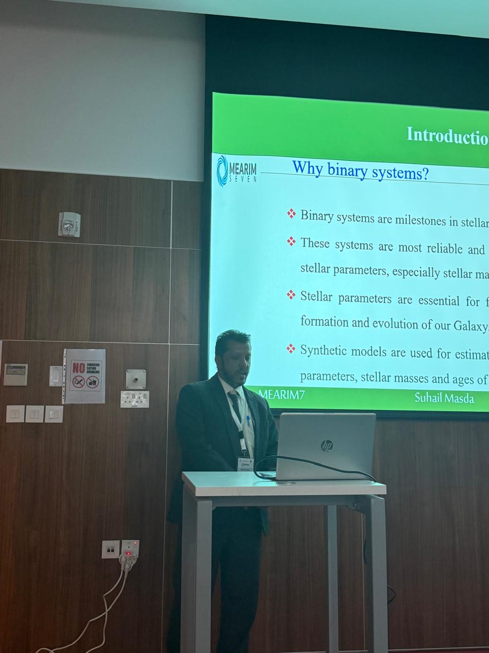 ومثّل جامعة المهرة في المؤتمر نائب رئيس الجامعة للدراسات العليا والبحث العلمي الدكتور سهيل جمعان مصدع، الذي قدّم ورقة علمية بعنوان “العناصر النجمية لنظام ثنائي قريب اعتماداً على أرصادات غايا”، نالت اهتمام المشاركين وأثرت جلسات المؤتمر بمضامينها العلمية.