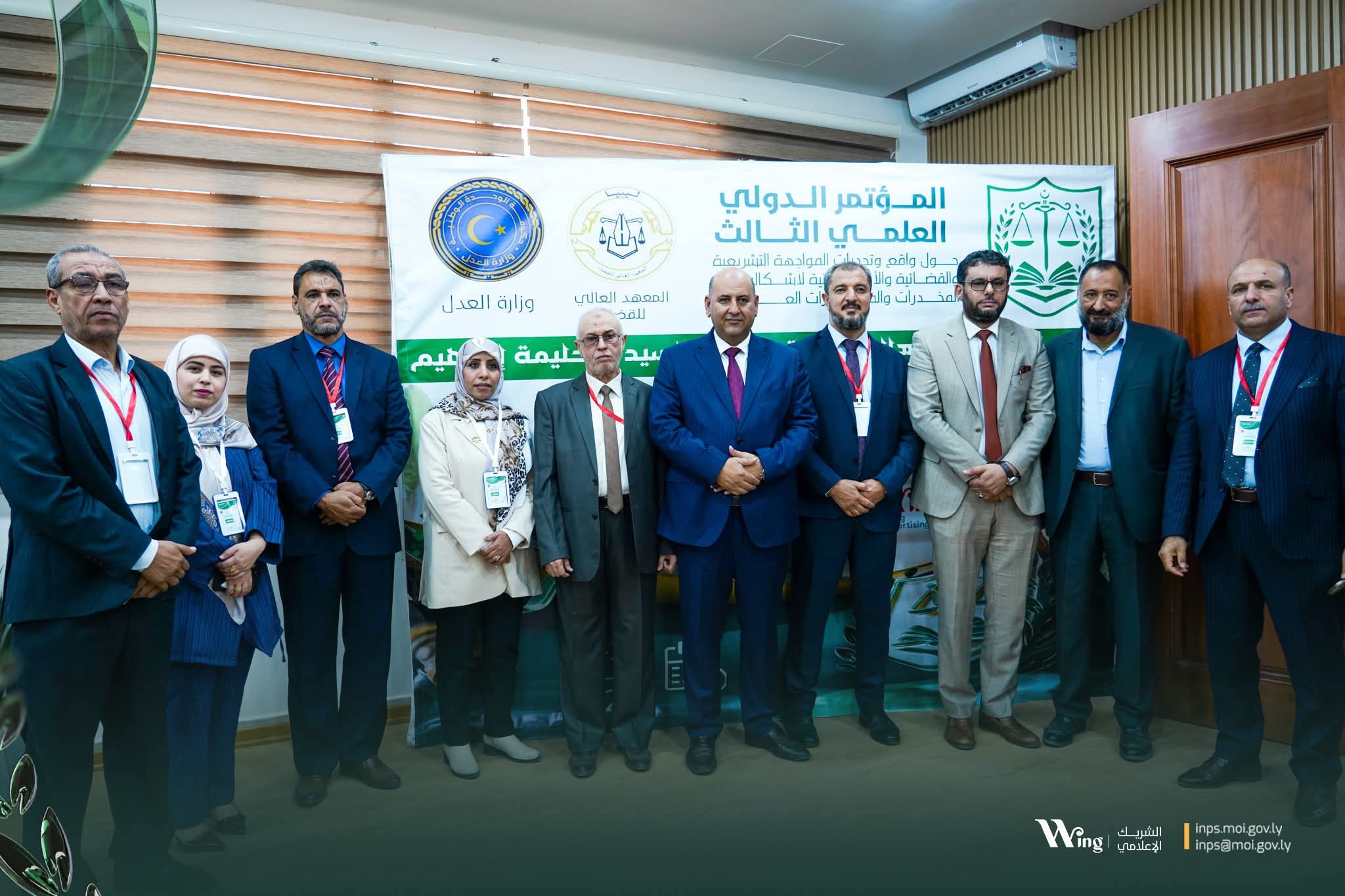 وشهدت الجلسة الافتتاحية حضور مدير عام المعهد العالي للقضاء والمشرف العام على المؤتمر المستشار الدكتور ضياء الدين المختار خماج، ونائب مدير عام المعهد الدكتور المختار أشنان، ورئيس المؤتمر ورئيس اللجنة التحضيرية الدكتور محمد عبدالرحمن الفيتوري، ورئيس اللجنة العلمية المستشار الدكتور مسعود محمد شلندي، إلى جانب ممثلي الهيئات القضائية ووزارتي العدل والداخلية وجهاز المخابرات العامة، ورؤساء الجامعات المشاركة، ونخبة من الأكاديميين والباحثين والمهتمين بالشأن القانوني والأمني والصحي.