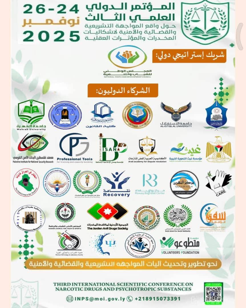 شاركت جامعة المهرة كشريك أكاديمي في المؤتمر الدولي العلمي الثالث حول المخدرات والمؤثرات العقلية، الذي ينظمه المعهد العالي للقضاء في طرابلس – ليبيا، بالشراكة مع عدد من المؤسسات الأكاديمية والأمنية. ويُعقد المؤتمر تحت عنوان: “واقع المواجهة التشريعية والقضائية والأمنية لإشكالات المخدرات والمؤثرات العقلية”، وذلك في مقر المعهد العالي للقضاء.