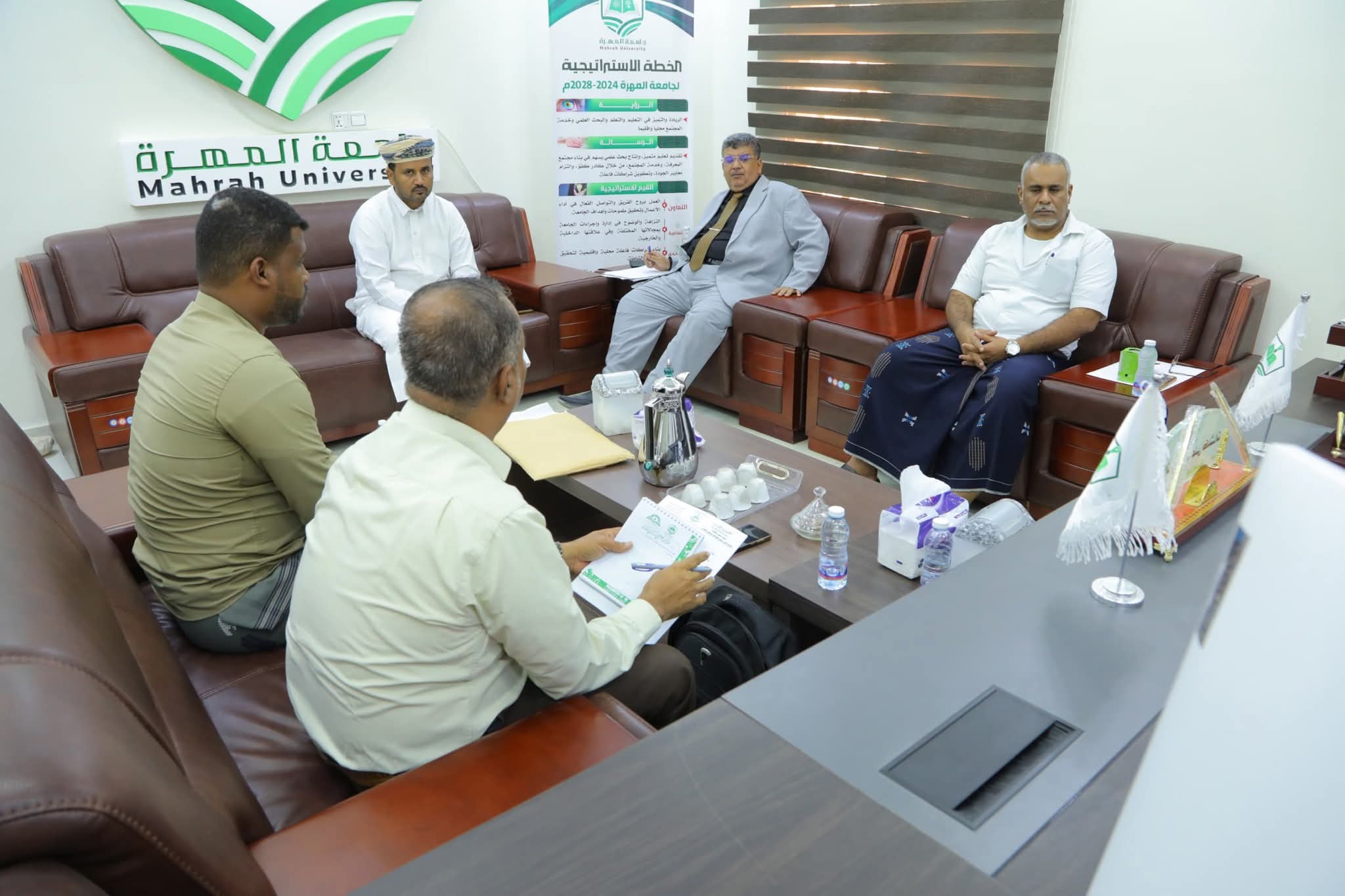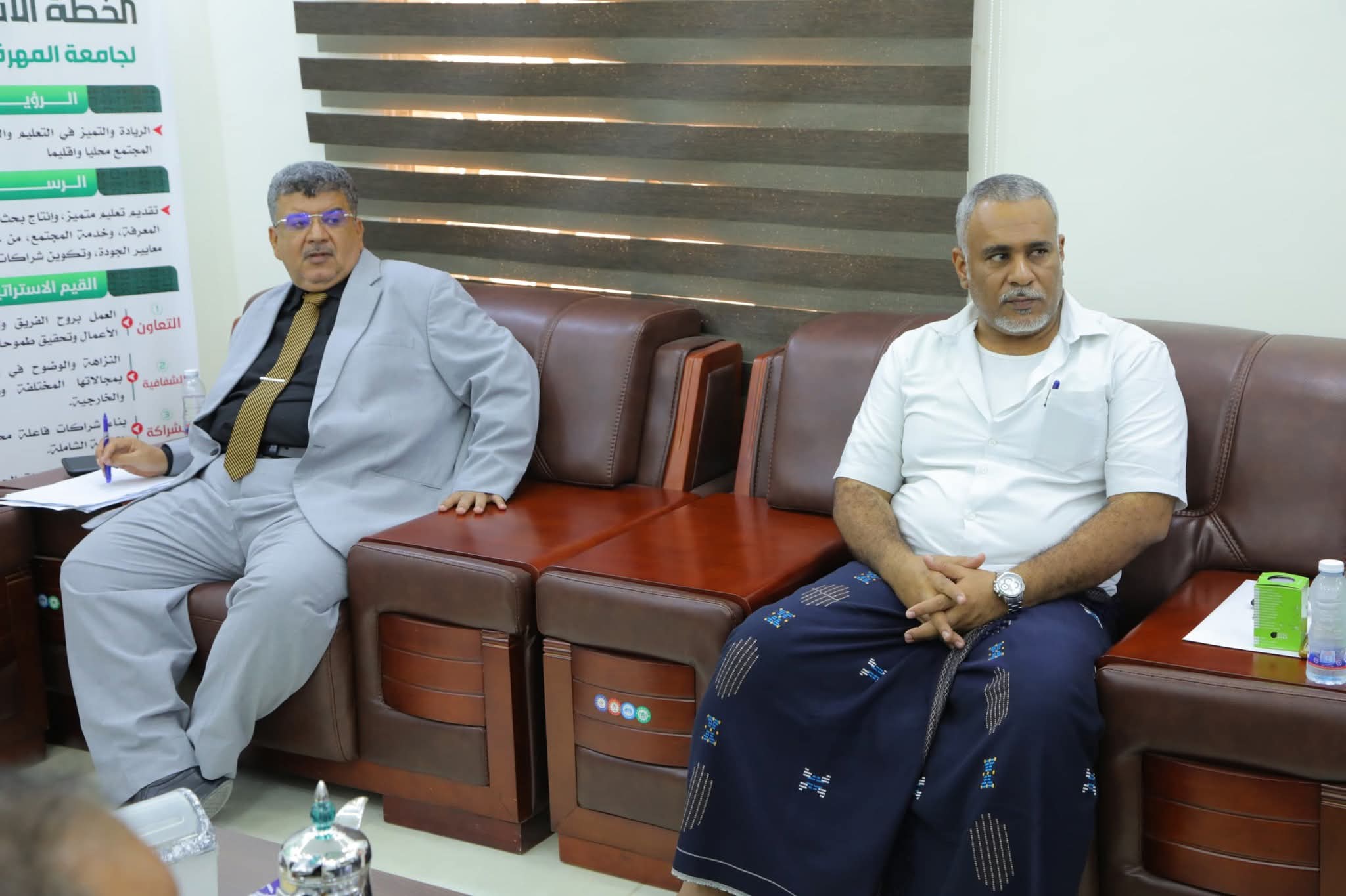 التقى رئيس جامعة المهرة معالي الدكتور أنور محمد كلشات، اليوم في مكتبه، باللجنة الإشرافية لحفل التخرج للدفعة الثانية بالجامعة، بحضور مساعد نائب رئيس الجامعة لشؤون الطلاب الدكتور عادل محفوظ باسدس، والأمين العام بالجامعة الأستاذ محمد سعيد بايعقوب، ومدير عام العلاقات العامة بالجامعة الدكتور أمين محمد بن عصم، ومدير عام القبول والتسجيل بالجامعة الأستاذ محمد سالم بن ضبيع، ومدير إدارة الحسابات بنيابة شؤون الطلاب بالجامعة الأستاذ ياسين سعيد باوبر.
