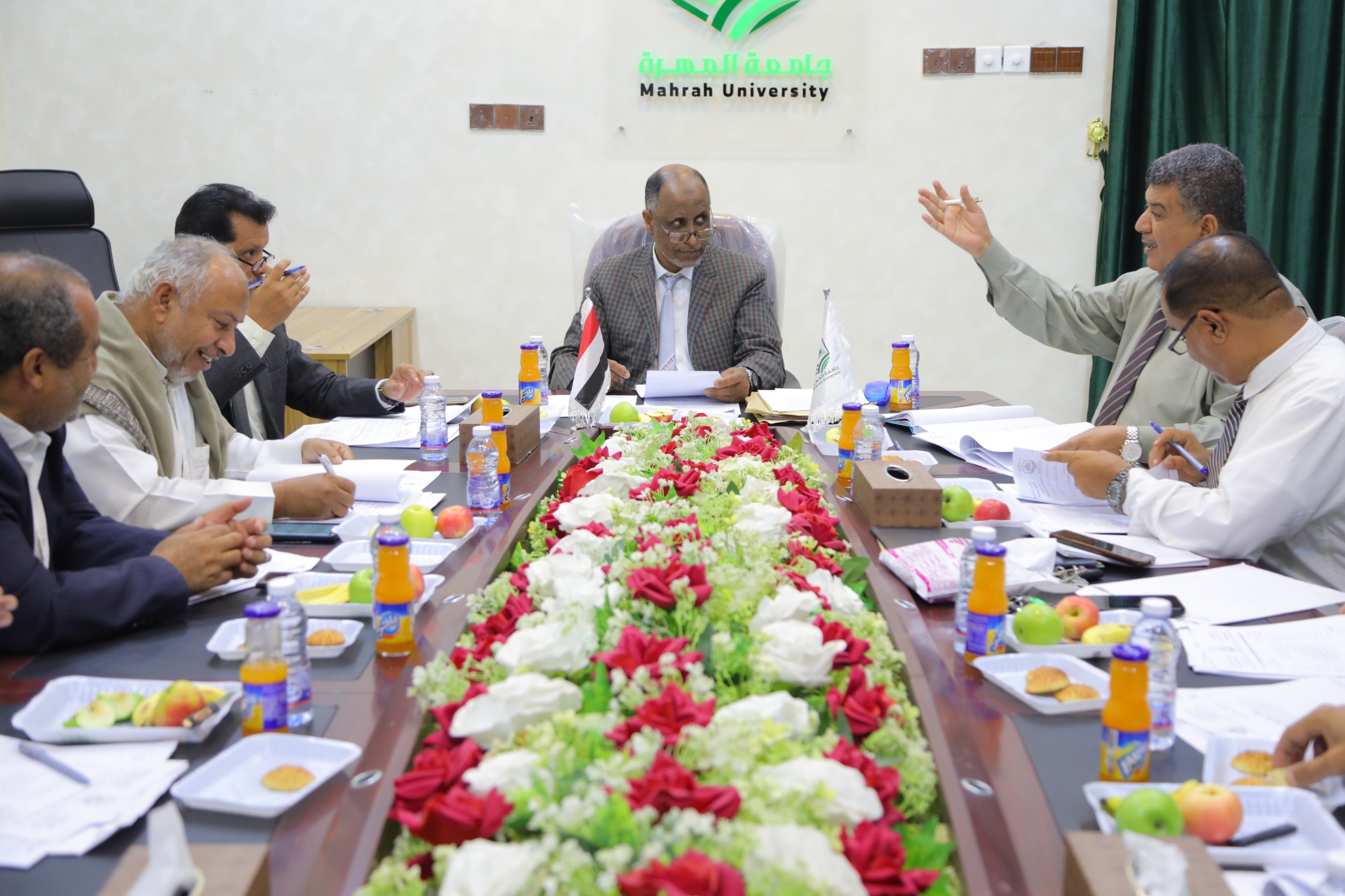 عقد مجلس جامعة المهرة، صباح اليوم، اجتماعه في دورته الرابعة للعام الجامعي 2025–2026م، برئاسة نائب رئيس الجامعة للشؤون الأكاديمية الدكتور فائز جمعان بن مركب، وبحضور أعضاء المجلس.