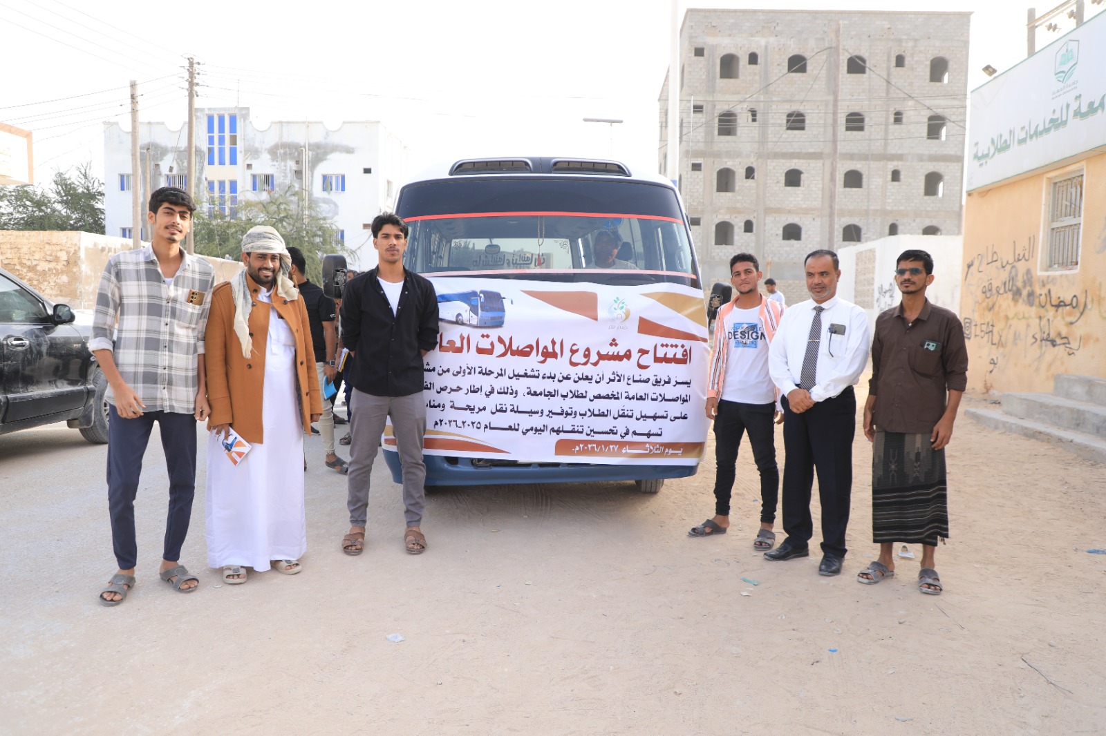 انطلاقاً من التوجيهات النبوية الشريفة في تعزيز قيم التكافل وخدمة المجتمع، وبالتنسيق مع نيابة شؤون الطلاب بجامعة المهرة، دشن فريق صناع الأثر مشروع مواصلات الطلاب، الهادف إلى التخفيف من معاناة الطلاب وتسهيل عملية تنقلهم من السكنات الجامعية إلى كليات الجامعة.